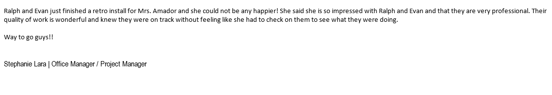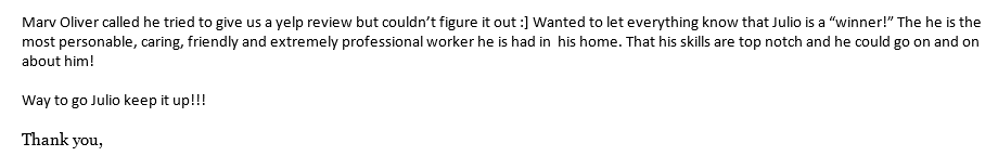 "Ralph & Jose are amazing! They were such a pleasure to have in our home! They were fun, quiet, and respectful. Their workmanship is out of this world!"